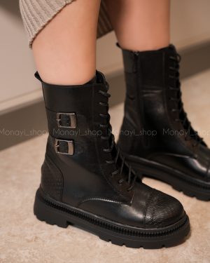 این بوت مشکی رو با شلوارهای جذب یا دامنهای بافت بلند ست کن تا استایلی شیک و زمستانی بسازی.
